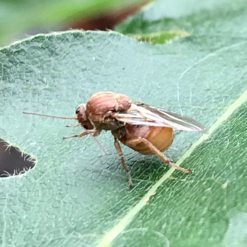 This is the one to look for if you want to stay true to the native fauna. The apple oak gall wasp (Biorhiza pallida) lays multiple fertilised eggs on the oak, which then forms a spongy, irregular-shaped growth. An apple oak gall will have numerous small exit holes visible, up to thirty. Like the marble gall wasp, they also have two alternate lifecycles. The asexual females that emerged from this gall will stay on this tree, but fall to the ground to lay eggs in the roots. The sexual generation will then hatch from these eggs, and the female climbs up the trunk to lay the fertilised eggs.